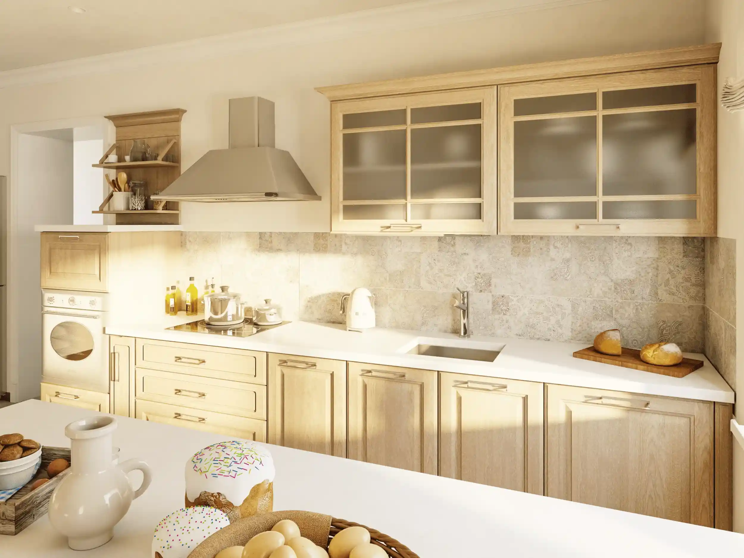 Кухня Астра является воплощением гармонии и утонченности в классическом стиле. Фасад из массива ясеня или дуба придает кухне органичности, благодаря которой она впишется в интерьер и квартиры и загородного дома. Островная зона обеспечивает невероятное удобство во время приготовлении блюд, а шкафы предлагают много места для хранения кухонной утвари. Стеклянные элементы шкафчиков придают легкости, создавая атмосферу домашнего уюта. Выберите модель Астра для создания пространства, где стиль встречается с комфортом!