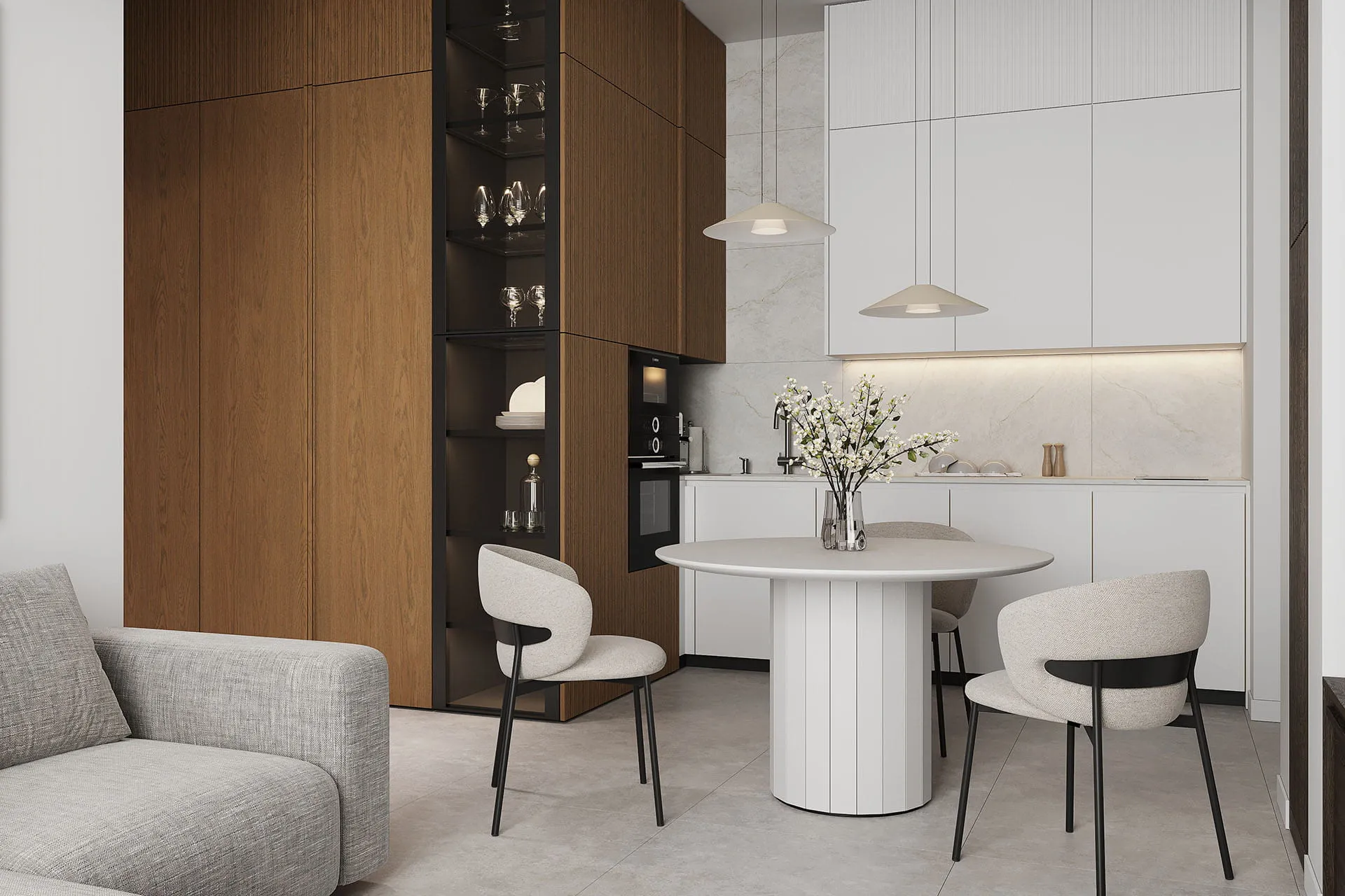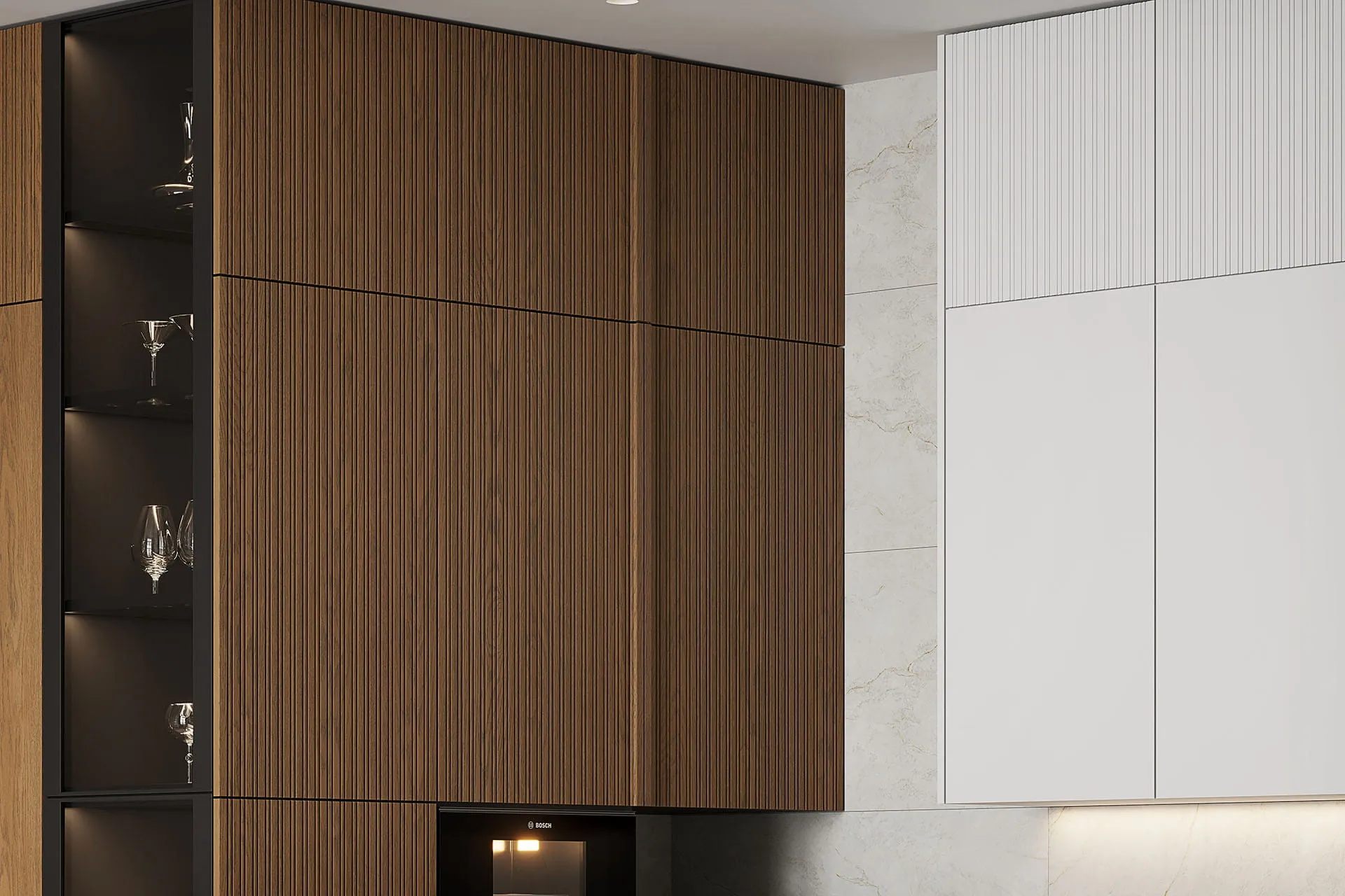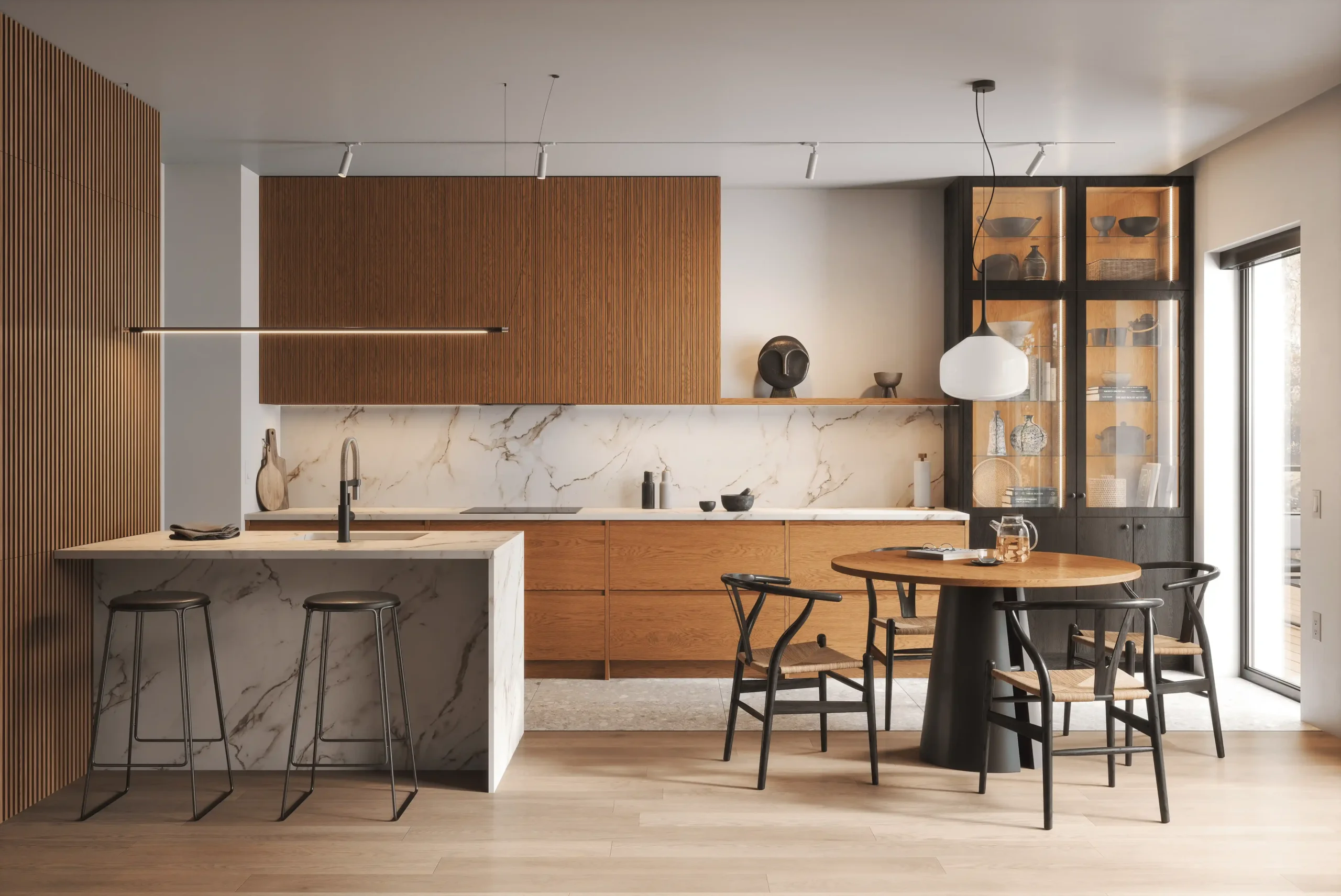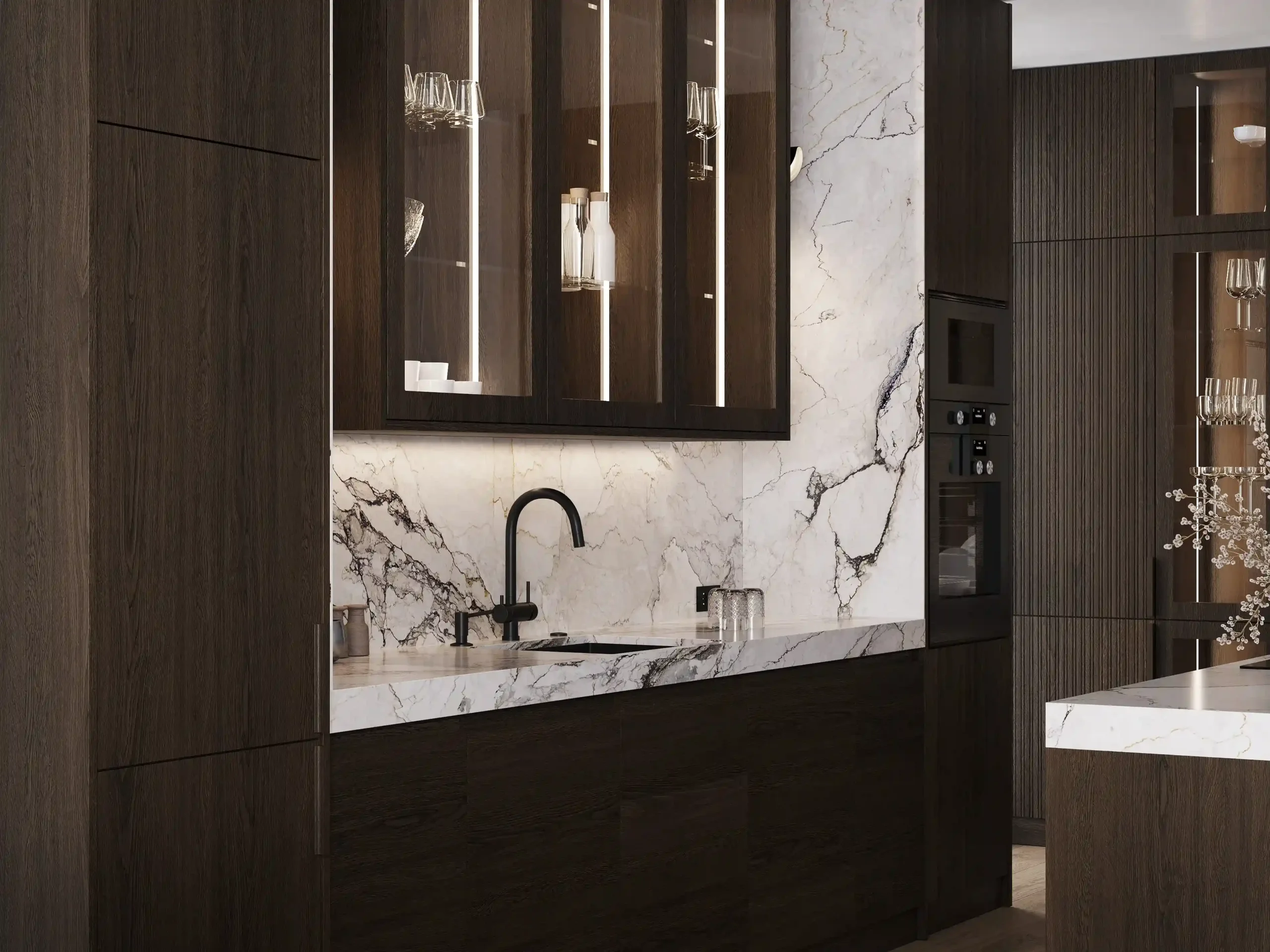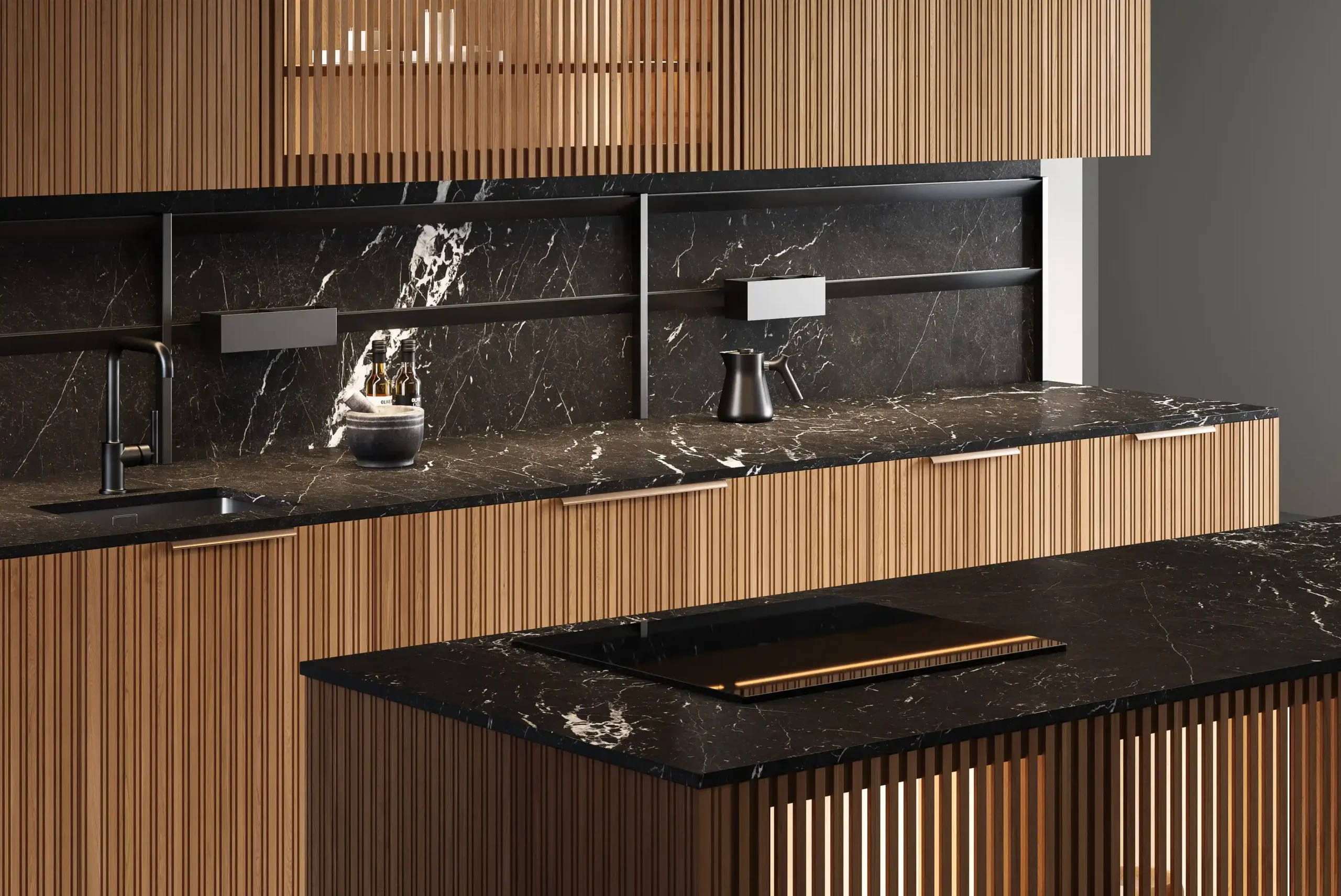Котра является идеальным примером минимализма и грамотно организованного пространства в стиле джапанди. Модель сочетает в себе фасады из натурального дерева и роскошные столешницы из искусственного камня, а фрезерованные верхние модули создают атмосферу легкости. Подсветка в витрине-буфете добавляет дополнительную игру теней и света в вечернее время. Котра станет центром вашего дома, где каждая деталь подчеркивает высокое качество и чувство стиля. Создайте пространство, в котором удобно готовить и принимать гостей!