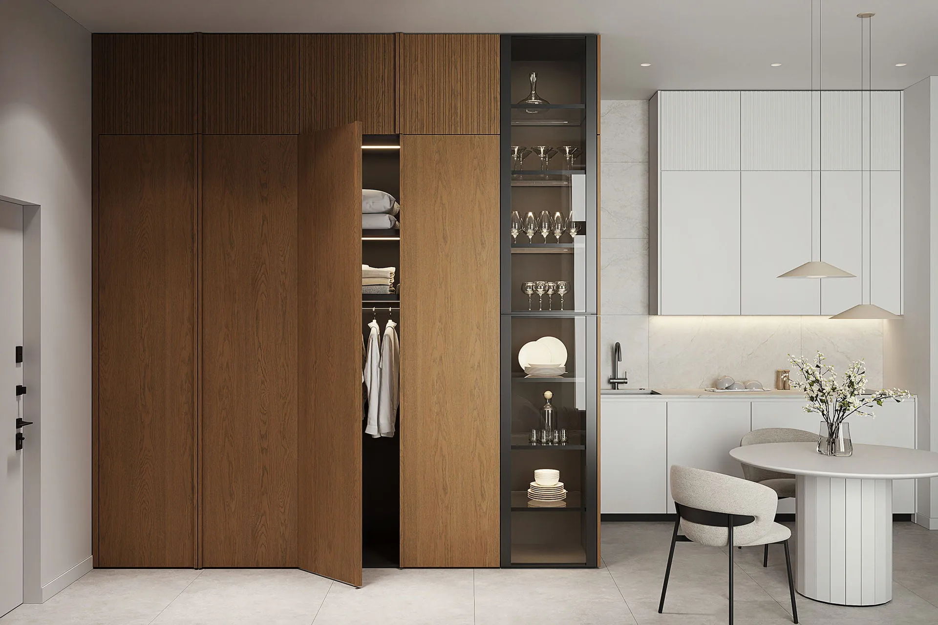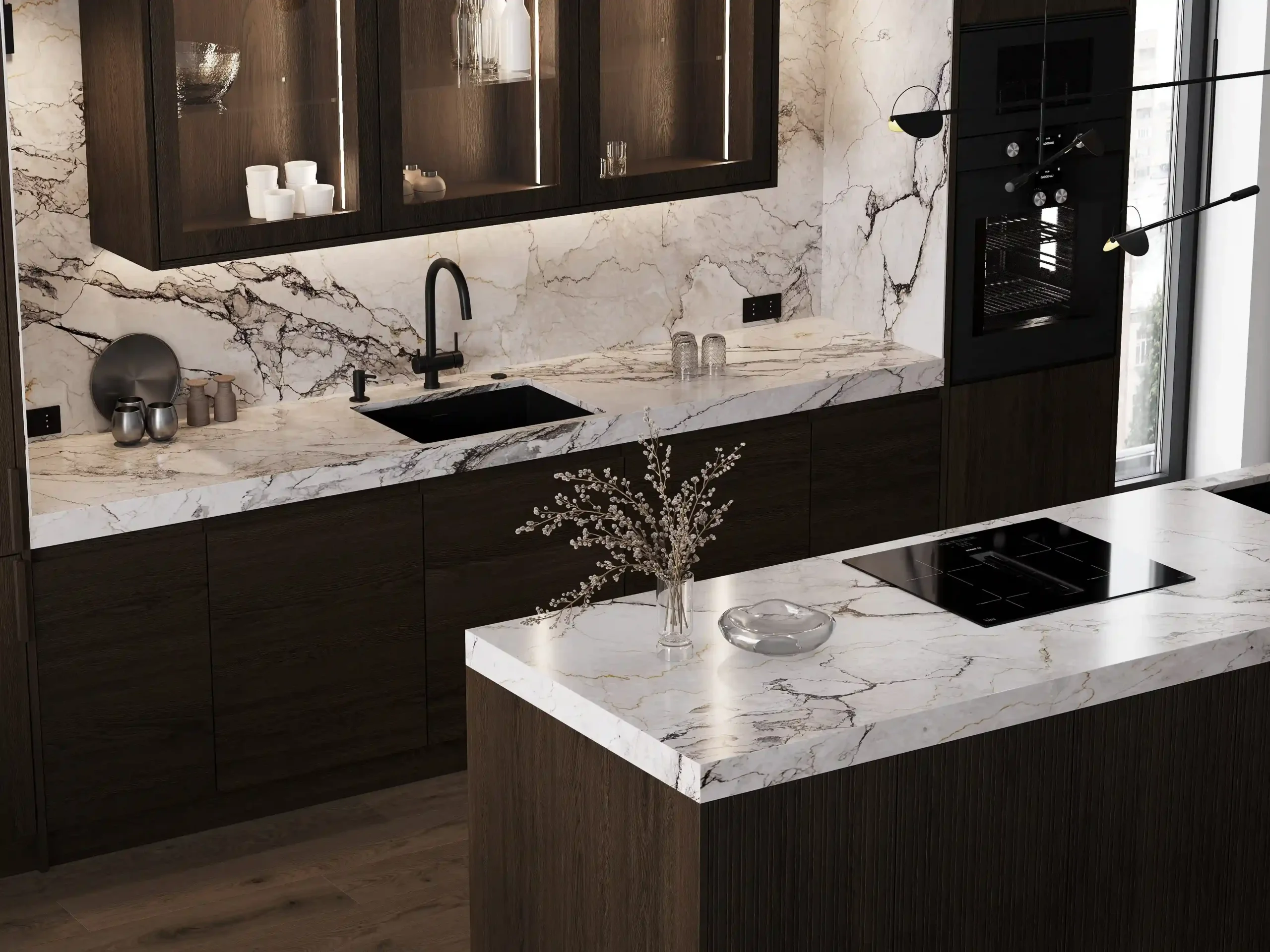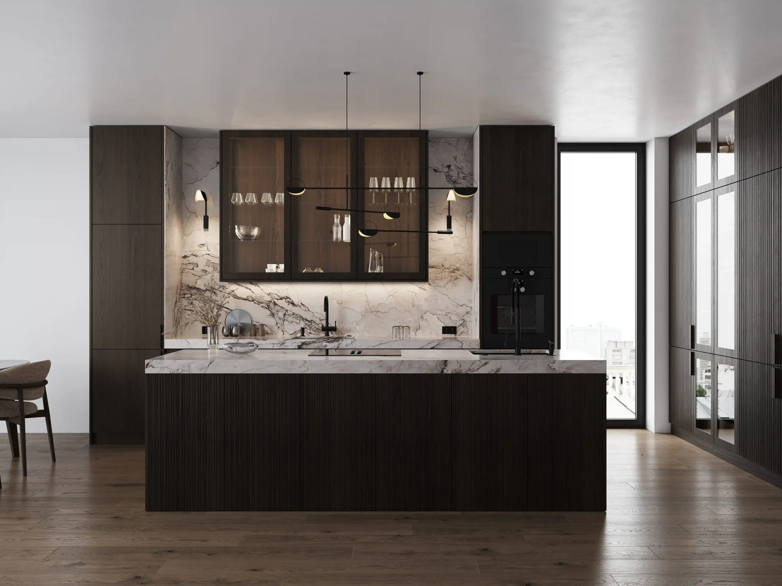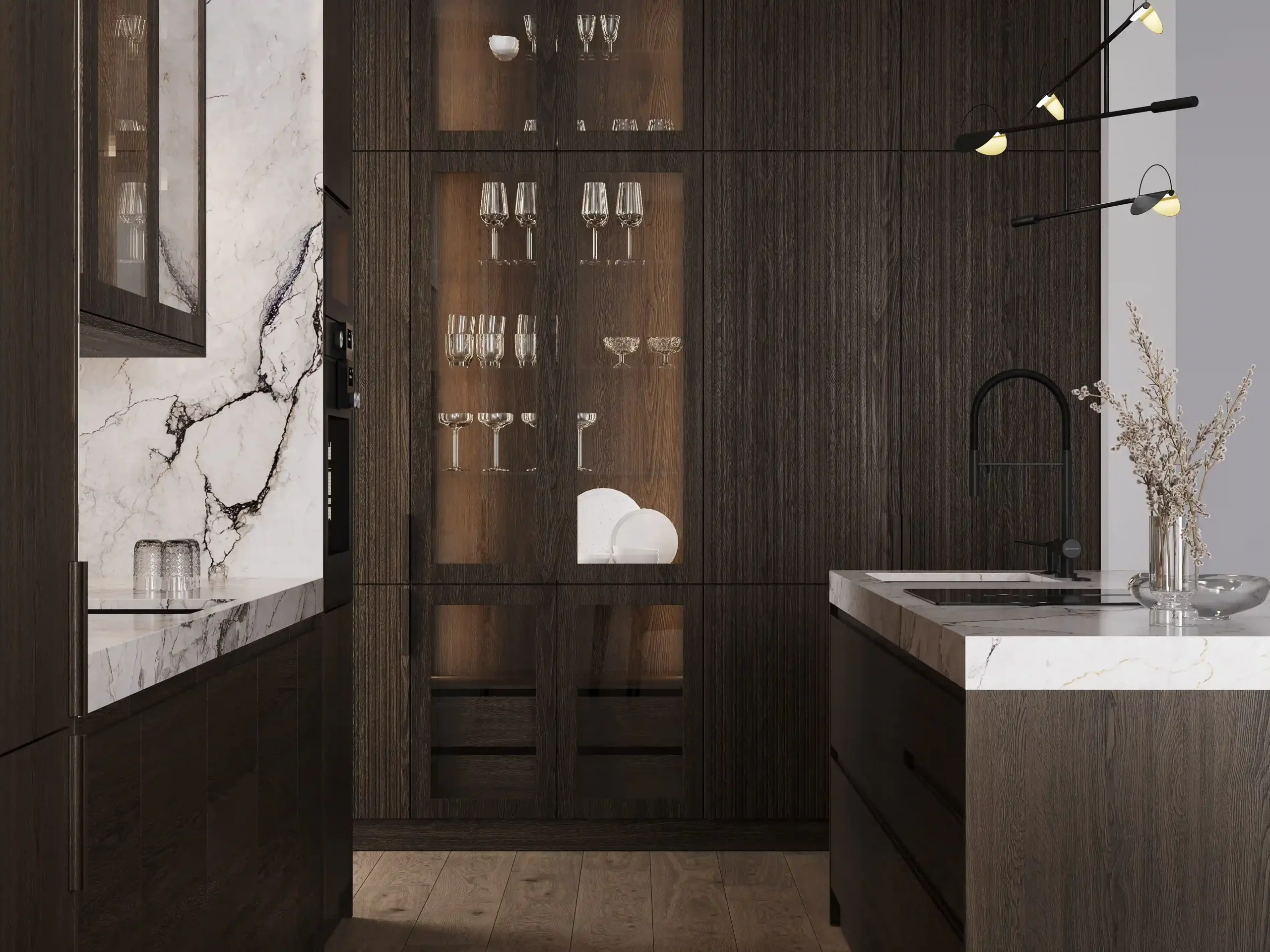 Котра является идеальным примером минимализма и грамотно организованного пространства в стиле джапанди. Модель сочетает в себе фасады из натурального дерева и роскошные столешницы из искусственного камня, а фрезерованные верхние модули создают атмосферу легкости. Подсветка в витрине-буфете добавляет дополнительную игру теней и света в вечернее время. Котра станет центром вашего дома, где каждая деталь подчеркивает высокое качество и чувство стиля. Создайте пространство, в котором удобно готовить и принимать гостей!