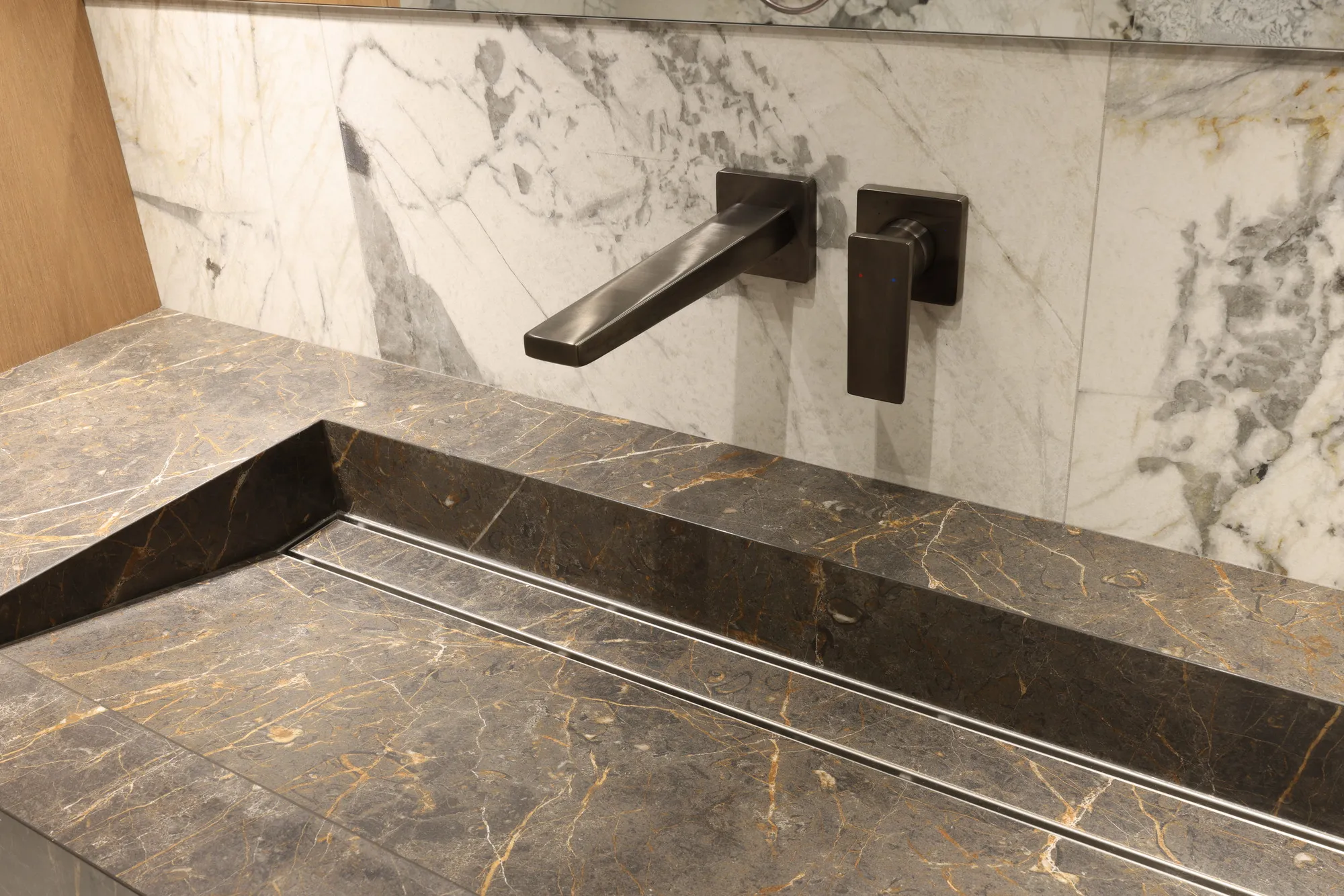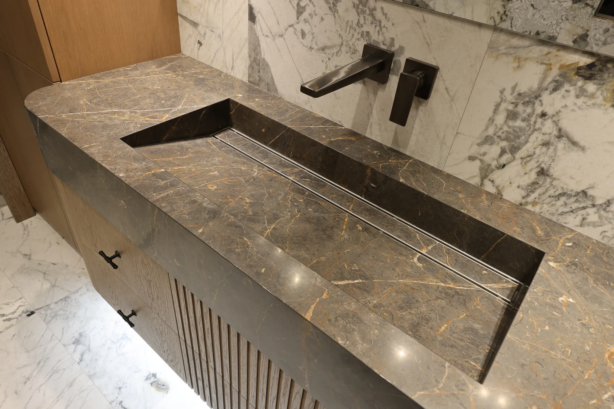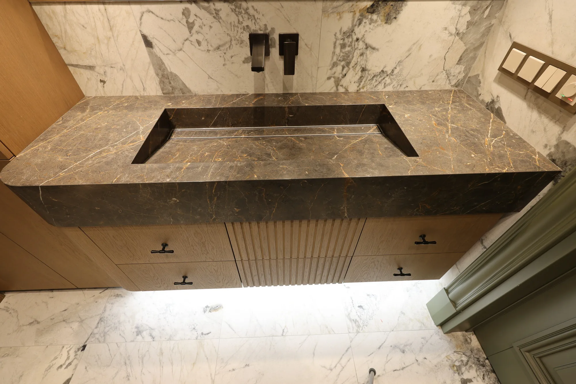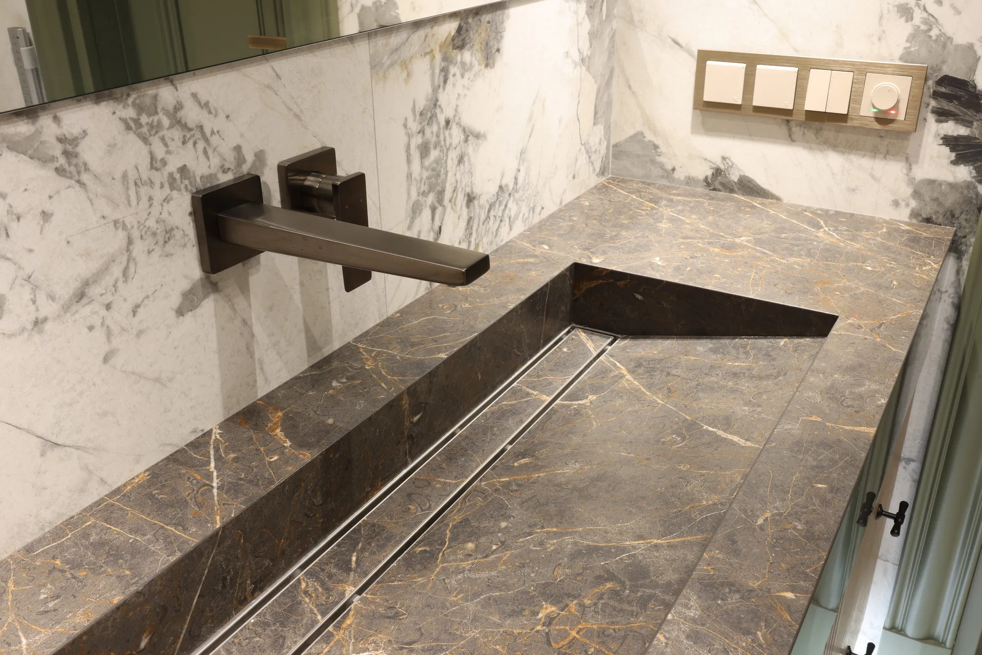 Умывальник с интегрированным трапом и радиусным углом